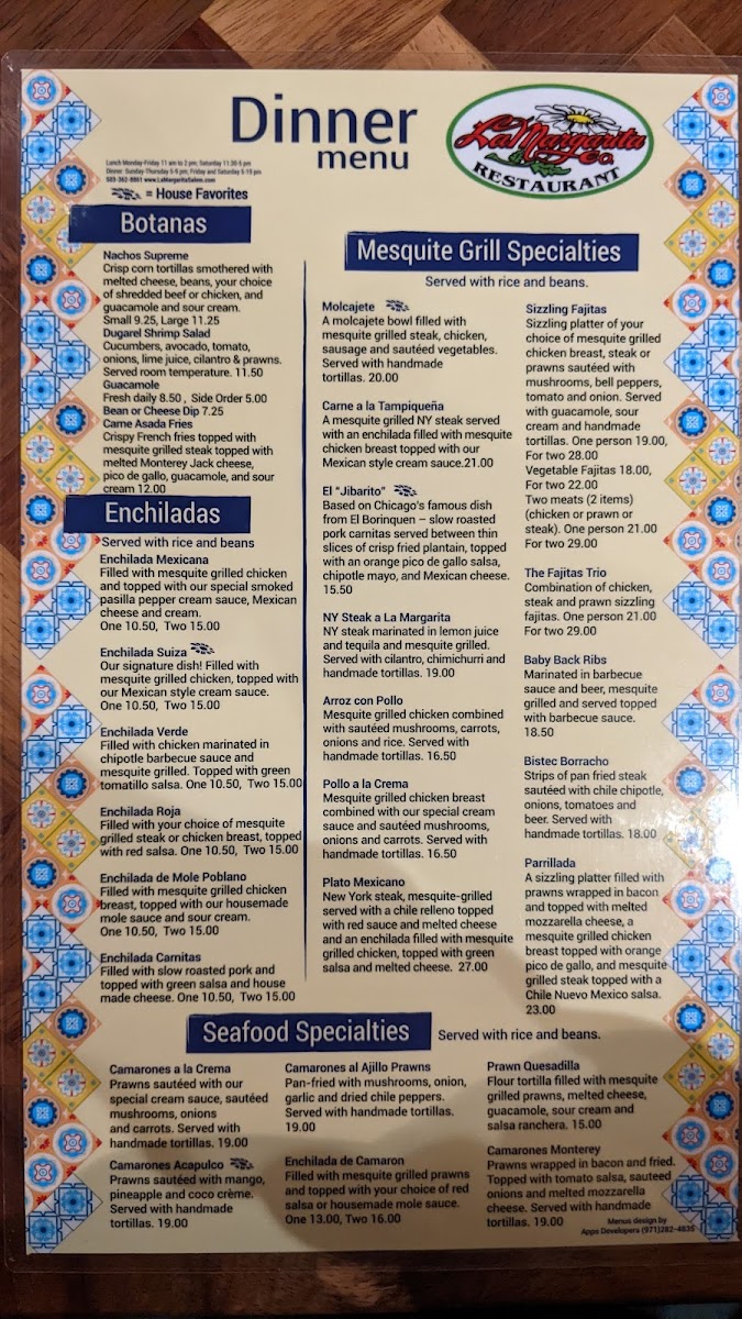Filled with mesquite grilled prawns and topped with your choice of red salsa or house made mole sauce